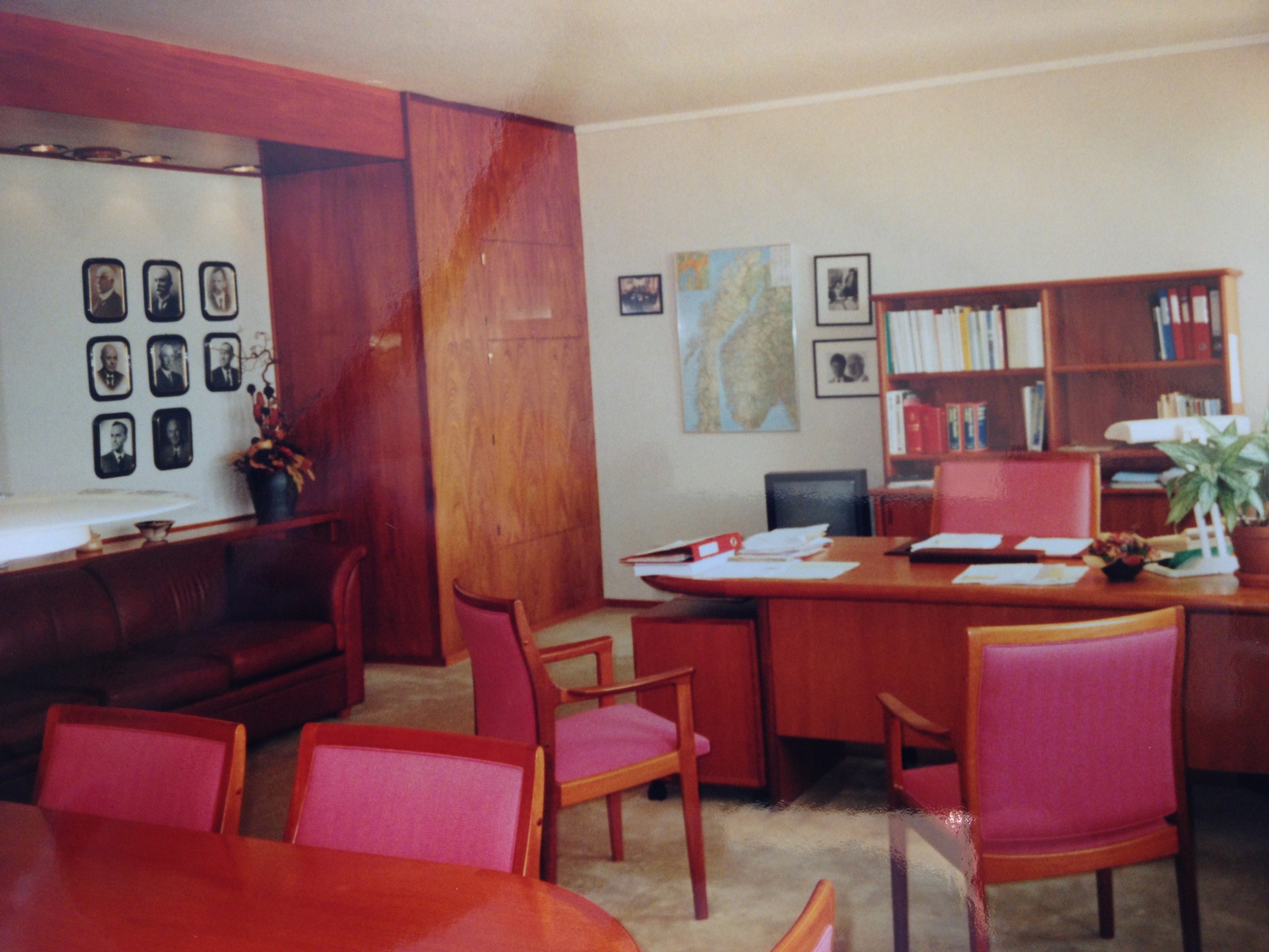 Før kontoret i 1997 måtte vike for nytt pressekonferanserom, huset det i noen måneder 1996-1997 ekspedisjonssjef Arne Spildo og i noen uker i 1997 statsminister Thorbjørn Jagland. (Foto: Toril F. Borthen/SMK)