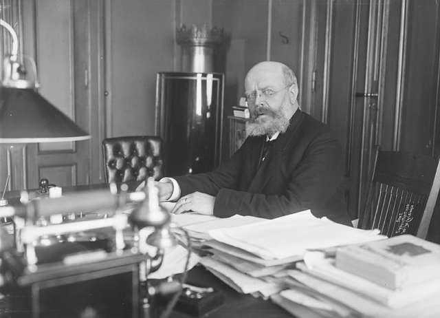 Statsrådskontoret i Kirke- og undervisningsdepartementet, i Departementsgården i 1914. (Foto: Olaf Væring/Norsk Folkemuseum).