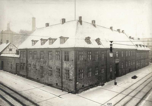 Departementsgården på hjørnet Dronningens gate/Tollbodgaten i 1900, med Generalitetsgårdens fasade langs Dronningens gate videre mot høyre. Trikken er kommet og det er bare et tiår igjen av departementskontorenes nær hundreårige historie på denne adressen. Sommeren 1914 flyttet Kirke- og undervisningsdepartementet fra Departementsgården til regjeringsbygningen Petersborg på Victoria Terrasse.