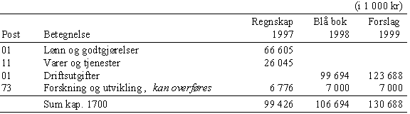 Forsvarets forskningsinstitutts samlede budsjett for 1999 er som følger:
