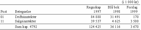 Bevilgningsforslaget på post 01 gjelder tilskudd fra Kulturdepartementet i forbindelse med at det i 1993 ble opprettet 18 nye stillinger ved Forsvarets musikk, jf St meld nr 19 (1992-93). Under post 11 er det budsjetterte billettinntekter ved Norges Hjemmefrontmuseum. Inntektene er øremerket militærhistoriske forskningsmål.