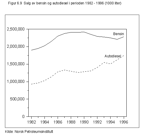 Figur 6.12 Salg av mineralolje til innenlands forbruk i perioden 1982-1996 Kilde: Norsk Petroleumsinstitutt
