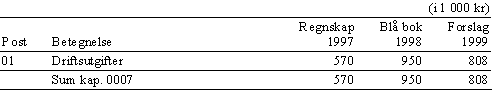 Det er for 1999 foreslått å bevilge 16, 875 mill. kroner over kap 5 Sysselmannen. I tillegg er det over Miljøverndepartementets budsjett kap 1470 foreslått bevilget 1,5 mill. kroner som tilskudd til miljøvernarbeidet hos Sysselmannen. Av dette gis det i form av en posteringsfullmakt 0,55 mill. kroner til lønnsmidler for miljøvernsjefen, jf kap 3005 Sysselmannen. Den samlede bevilgningen til kap 5 Sysselmannen blir således 17,425 mill. kroner. Det resterende av Miljøverndepartementets bevilgning på kap 1470 er prosjektmidler og vil i hovedsak bli gitt i form av belastningsfullmakter. Disse skal således utgiftsføres Miljøverndepartementet.