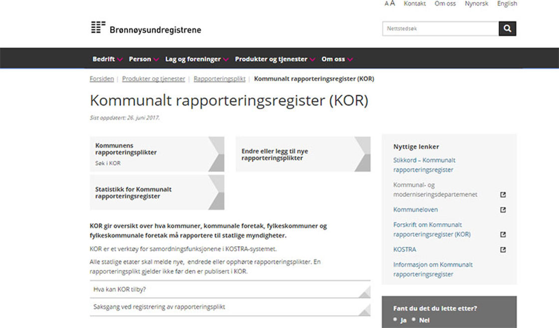 - Kommunalt rapporteringsregister (KOR) skal bli betre og meir brukarvennleg