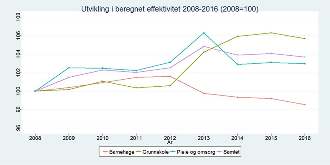 Senter for økonomisk forskning (SØF) har utarbeidet beregninger for effektiviteten i de kommunale tjenestene. Metoden sier noe om den enkelte kommunes effektivitet i forhold til beste etablerte praksis. Det foreligger nå resultater for enkeltkommuner på kommunedata.no for årene 2015 og 2016. Nettløsningen er først og fremst utviklet som et verktøy slik at kommunene selv kan sammenlikne seg med andre tilsvarende kommuner, og et utgangspunkt for refleksjon og videre analyser i kommunene.