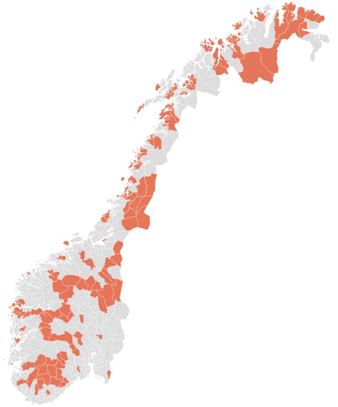 Figur: Kommuner med under 3000 innbyggere i 2020.