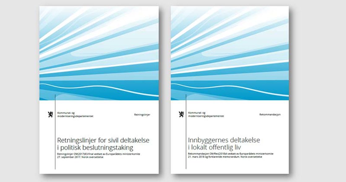 Rekommandasjon om innbyggernes deltakelse i lokalt offentlig liv og Retningslinjer for sivilsamfunnets deltakelse i politiske beslutningsprosesser foreligger nå i norsk oversettelse.