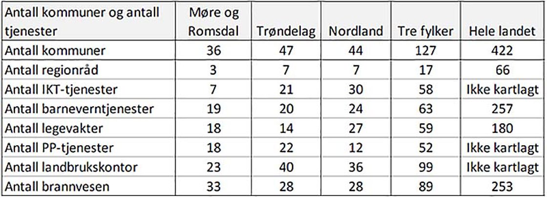 En ny kartlegging viser at mange kommuner løser oppgaver gjennom samarbeid. Mens det er 422 kommuner i Norge, er det for eksempel bare 257 barneverntjenester.