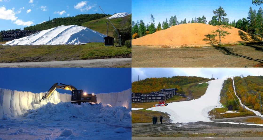 Det er samme prinsipp bak snølagringen. På Beitostølen og flere andre steder har de brukt flis til å legge over snøen gjennom sommeren. Det er det vanligste, mens Geilo Skisenter har brukt fiberduk.