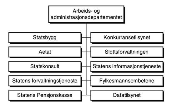 Programområde 01 Fellesadministrasjon omfatter driftsbudsjettene for Arbeids- og administrasjonsdepartementet, Fylkesmannsembetene, Statskonsult, Statens informasjonstjeneste, Statens forvaltningstjeneste, Statens Pensjonskasse, Konkurransetilsynet og Statsbygg. I tillegg omfatter programområde 01 statens tilskuddsordning for partistøtte, tilskuddsmidler avtalt gjennom lønnsforhandlingene i staten, overføringer til statens pensjonsordninger og selskaper under Arbeids- og administrasjonsdepartementet. Fra 2001 er Datatilsynet overført fra programområde 06 Justissektoren til programområde 01.