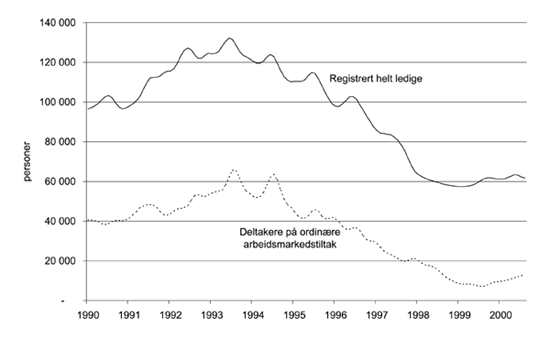 AKU-ledighet i 1993 er korrigert for bruddet i statistikken fra 1996
