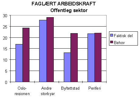 Figur 2b Prosentdelen av de sysselsette i offentleg sektor med fleirårig yrkesutdanning. Faktisk del og behov 1995.