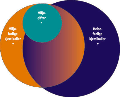 - Figur 15.1 Sammenheng mellom helse- og miljøfarlige kjemikalier.