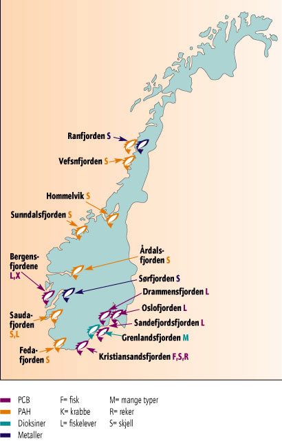Utslipp over lengre tid fra landbasert industri, gruvevirksomhet og tettsteder har ført til betydelige miljøgiftforurensninger av bunnsedimenter, flora og fauna i norske fjorder. Miljøgiftenes langsomme nedbrytning medfører at selv om disse utslippene i mange tilfeller er stanset eller sterkt redusert, er frigivelse av miljøgifter fra bunnsedimentene nå en hovedkilde til forurensning av fjordene. Betydningen av denne forurensningskilden vil vedvare i mange år framover, helt til forurensningene er tilstrekkelig overdekket av rene bunnsedimenter.