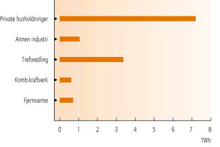 Bruken av bioenergi i Norge i 1995 var på om lag 13 TWh, dvs. om lag 5 prosent av den samlede energibruken. Av dette sto skogindustrien for en energiproduksjon på rundt 5 TWh. Fjernvarmeverk leverte 0,7 TWh og vedfyring representerte rundt 7 TWh.