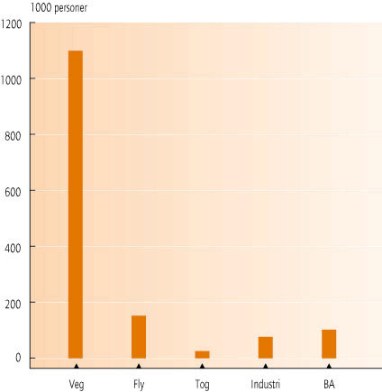 - Figur 17.23 Antall personer utsatt for støy over 55dB(A) døgnekvivalent, fordelt på kilder. 1995. BA er bygg og anlegg. (Kilde: SFT)