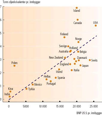 - Figur 17.3 Sammenhengen mellom energibruk (toe) pr. innbygger og BNP US dollar pr. innbygger (Kilde: OECD)