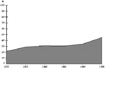 Bekvemmelighetsflaggs andel av verdensflåten 1970-1995