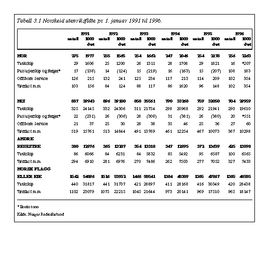 • Tabell 3.1 Norskeid utenriksflåte...