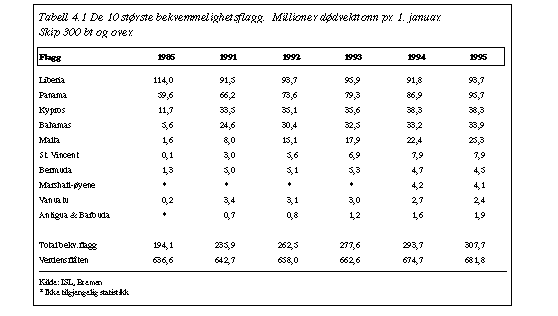 • Tabell 4.1 De 10 største bekvemmelighetsflagg...
