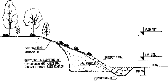 • Sikring mot erosjon eller kontroll med masseføringen der tiltakene primært er begrunnet med allmenne hensyn, eksempelvis for å hindre forurensning eller for å bedre forholdene for fisk i vassdraget.