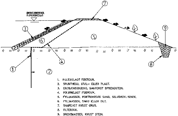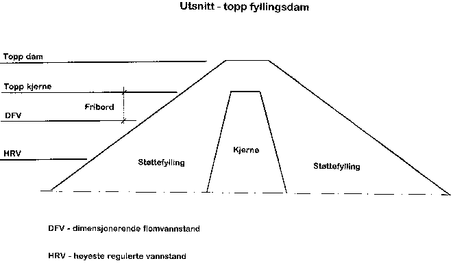 Figur 8.1 Figur 8.1: Prinsippskisse - fyllingsdam, med angivelse av høyeste