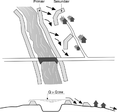 Når det gjelder utførelse av dammers flomløp er det i damforskriftens pkt. 8.2.1 et krav om at det ved dimensjoneringen av disse skal tas hensyn til at flomavledningen skal kunne skje slik at flomforholdene i vassdraget nedstrøms dammen så vidt mulig ikke forverres i forhold til naturlig tilstand. For å oppnå at avløpsflommen ikke øker ut over det som er naturlig, er det som regel nødvendig at det skjer en viss utjevning av vannføringen ved lagring i magasinet. Dette skjer ved at det tillates en stigning av vannstanden ut over høyeste regulerte vannstand (HRV). Øvre tillatte grense er dimensjonerende flomvannstand, som er den høyeste vannstand som kan opptre i magasinet ved dimensjonerende tilløpsflom (flom med et gjentaksintervall på 1000 år) og med åpne flomløp.