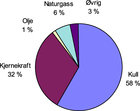 Kraftforsyningen i Nord-Europa og særlig i Norden er svært heterogen, se figur 8.1. Norge med praktisk talt bare vannkraft og Danmark, hvor kraftproduksjonen i det alt vesentlige er basert på fossile brensler, utgjør ytterpunktene. Finland og Sverige har mer variert kraftforsyning med vannkraft, kjernekraft og varmekraft basert på fossile brensler. Produksjonskapasiteten i Sverige, som baseres på fossile brensler (oljekondensverk), er først og fremst en reservekapasitet. I år med normale nedbørs- og tilsigsforhold er den svenske kraftproduksjonen basert på fossile brensler beskjeden. I Danmark utgjør vindkraft i underkant av 5 prosent av den totale kraftproduksjonen. Tysklands kraftproduksjon er dominert av kull- og kjernekraft, mens Nederland i tillegg til kullkraft også har et betydelig innslag av gasskraft.