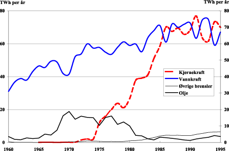 Fram til 1997 var Norge nettoeksportør av kraft i alle år bortsett fra 1977, 1986, 1996 og 1997. I 1994 var det nær balanse mellom eksport og import. Utover på 1990-tallet har den norske kraftbalansen blitt strammere, og Norge hadde rekordstor nettoimport (9 TWh) i tørråret 1996. Norge hadde også en betydelig nettoimport på i underkant av 4 TWh i 1997. Den store importen i 1996 og 1997 må imidlertid ses i sammenheng med det lave tilsiget i 1996.