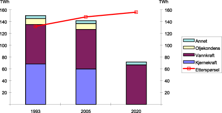 I dag er det norske elforbruket noe høyere enn produksjonsevnen i år med normale nedbørs- og tilsigsforhold. Siden elforbruket vokser raskere enn produksjonskapasiteten, kan man forvente at Norge i årene framover oftere vil være i en nettoimportsituasjon enn det som har vært vanlig fram til nå. For å forhindre at Norge skal komme i en permanent nettoimportsituasjon (bortsett fra i særlig våte år), må enten produksjonskapasiteten økes i en langt raskere takt enn det som har vært tilfelle i de senere årene, eller elforbruket må begrenses.