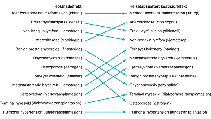 Figur 10.1 Utvalg tilstander og gjennomsnittlig helsetap