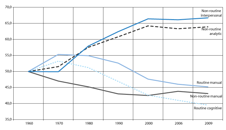 Kilde: Autor, D. H. and B.M. Price (2013), «The Changing Task Composition of the US Labor Market: An Update of Autor, Levy, and Murnane (2003)», MIT Mimeograph, June I OECD 2013b