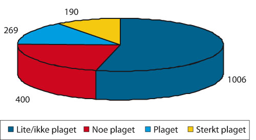 Figur 9.12 Antall støyplagede i Norge fordelt på plagegrad i 2006. Veitrafikk gjelder per 2005.