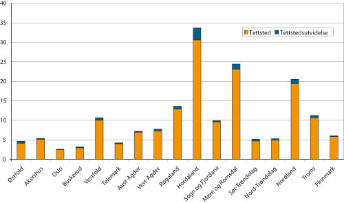 Kilde: Statistisk sentralbyrå. Datagrunnlag: GAB grunneiendomsregister og nasjonal vegbase.