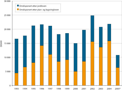 Årlig omdisponering av de mest verdifulle jordressursene skal halveres innen 2010.