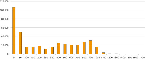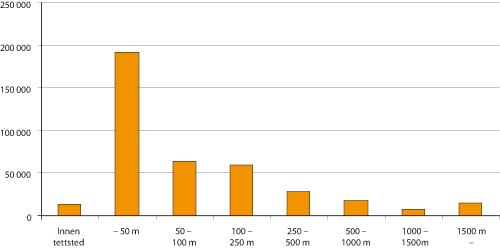 Figur 5.7 Antall fritidshus etter avstand fra veg.