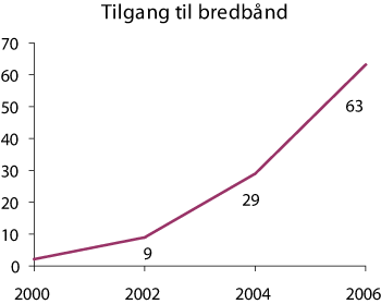 Figur 2.1 Andel av befolkningen med tilgang til bredbånd hjemme 2000–2006 (prosent)