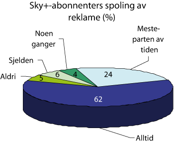 Figur 2.13 Sky+-abonnenters spoling av tv-reklame (prosent)