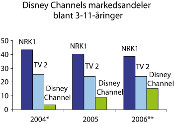 Merk: * For Disney Channel: data fra 1. juli–31. desember 2004.