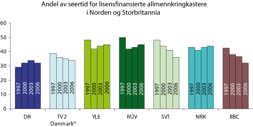 De nasjonale, offentlig eide allmennkringkasterne står fremdeles sterkt hos publikum i de nordiske land og Storbritannia. NRK har klart seg godt, sett i forhold til sammenlignbare kringkastere i våre naboland. SVT og BBC har relativt sett opplevd størst reduksjon i markedsandeler. Dette kan muligens sees i sammenheng med at både Sverige og Storbritannia har vært pionerer for digitaliseringen av fjernsynsmediet i Europa. SVT og BBC har derfor på et tidlig tidspunkt fått erfare at digitaliseringen fører til skjerpet konkurranse om seernes oppmerksomhet.
