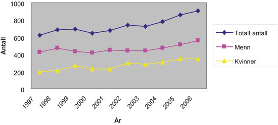 Figur 5.2 Uteksaminerte doktorgradskandidater 1997–2006