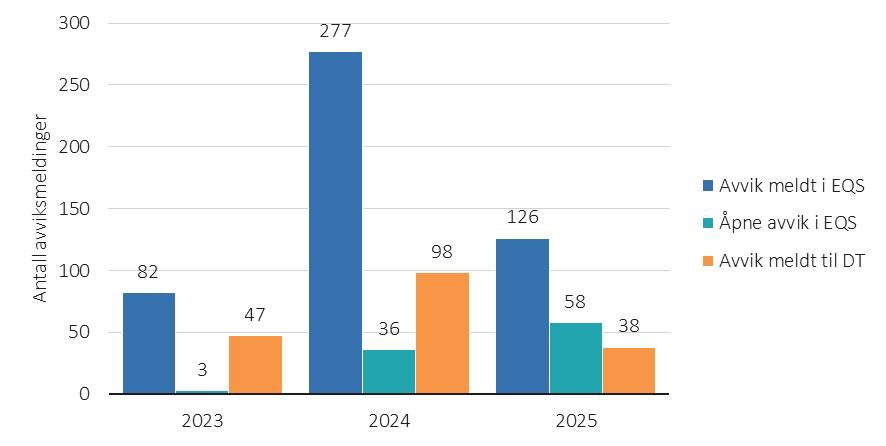 De statiske analysene og intervjuene viser at det er forskjell mellom de virksomhetene som tok i bruk Helseplattformen i 2022, og de som tok den i bruk senere. På grunn av de korte tidsseriene har vi lite statistiske analyser på utviklingen i pasientsikkerhet i Nord-Trøndelag og Møre og Romsdal, men intervjuene og deskriptiv statistikk indikerer at de følger utviklingen til St. Olavs. Det er imidlertid vanskelig å konkludere da variasjonen i perioden er høy.