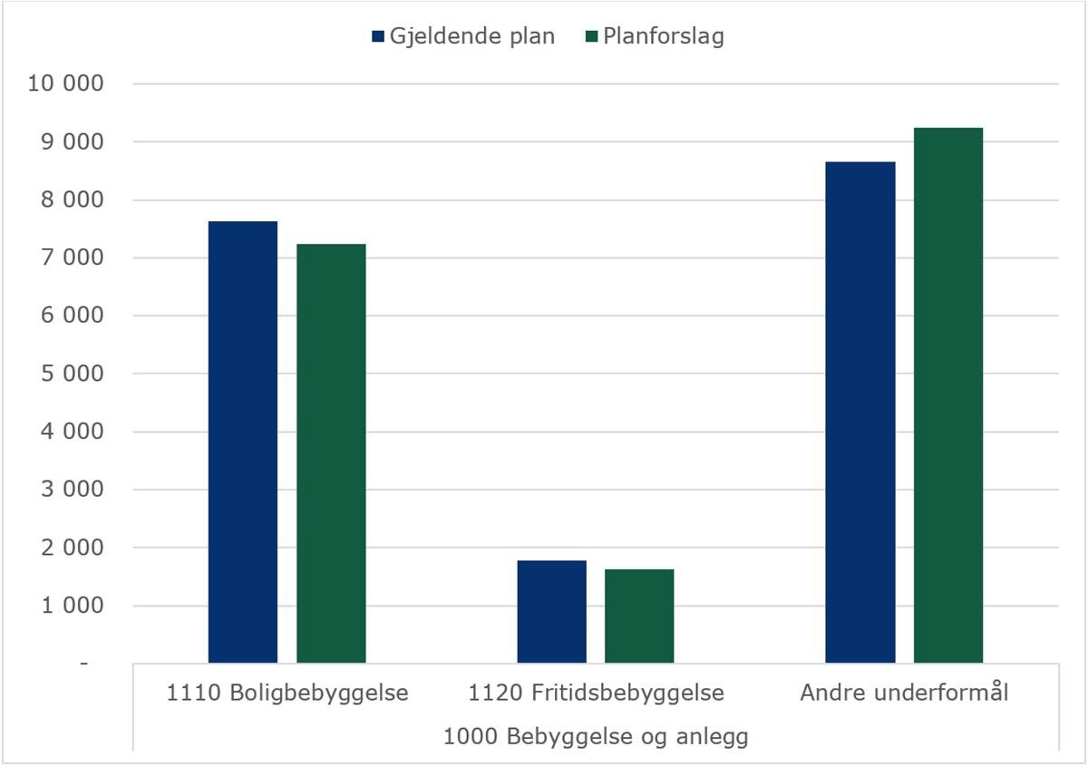 Arealformål | Gjeldende plan | Planforslag | endring fra gjeldende plan | |