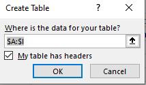 Figur 56: Marker hele tabellens utstrekning og lag en tabell av utvalget