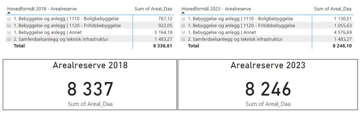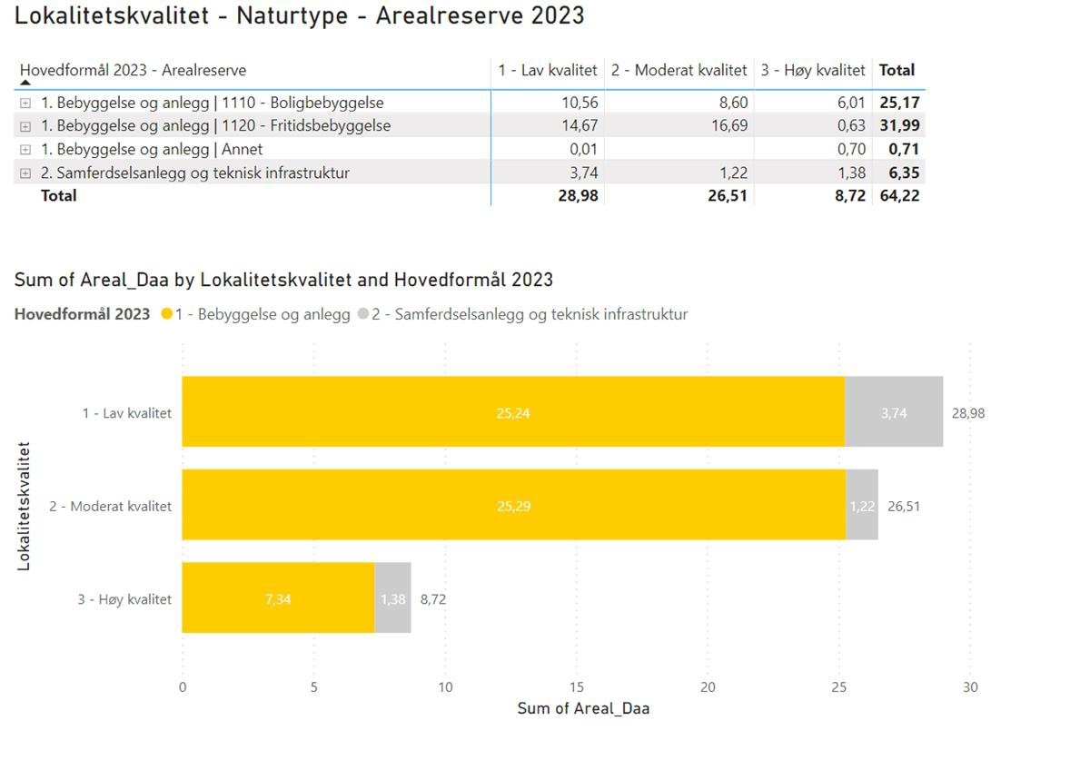 Figur 72: Arealreserve vist som tabell og diagram