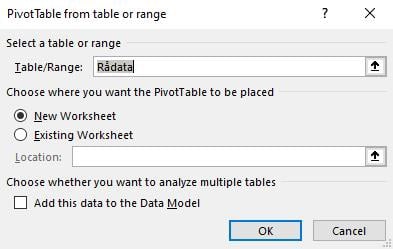 Lag en pivottabell fra rådata-fanen.