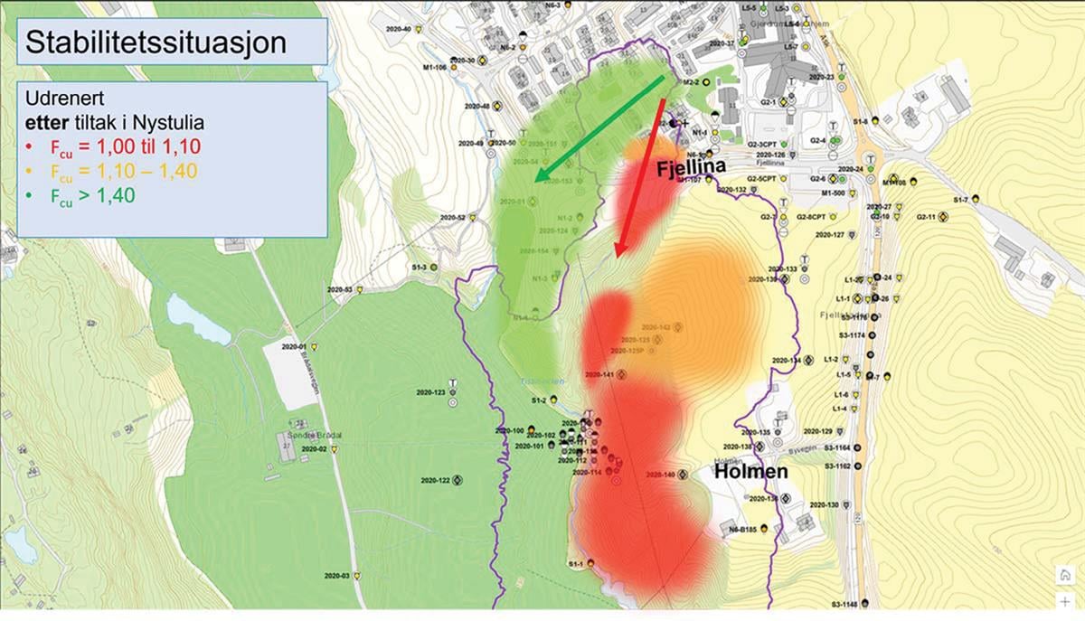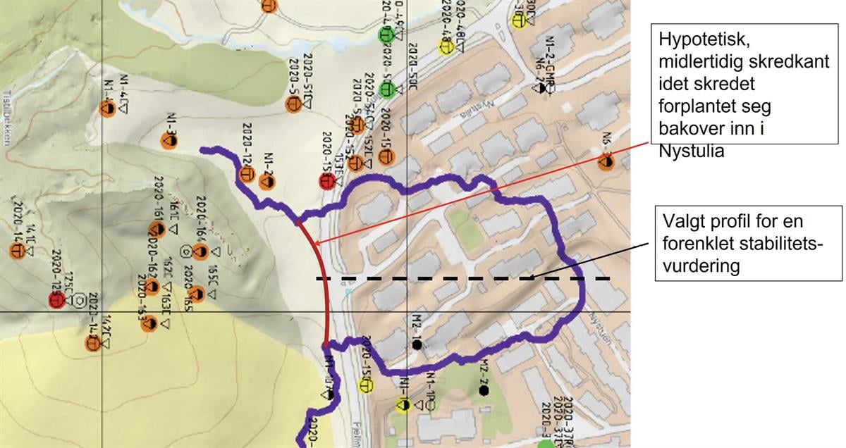 Utvalget vil innledningsvis påpeke at faresonekartleggingen og faregradklassifiseringene ikke fikk avgjørende betydning for hvilke sikringstiltak som ble iverksatt i forbindelse med utbyggingen i Nystulia. Områdestabilitet skal vurderes gjennom detaljerte utredninger som den enkelte tiltakshaver er ansvarlig for. Slike utredninger ble gjennomført, og disse er nærmere drøftet i kapitlene 5.5 og 8.