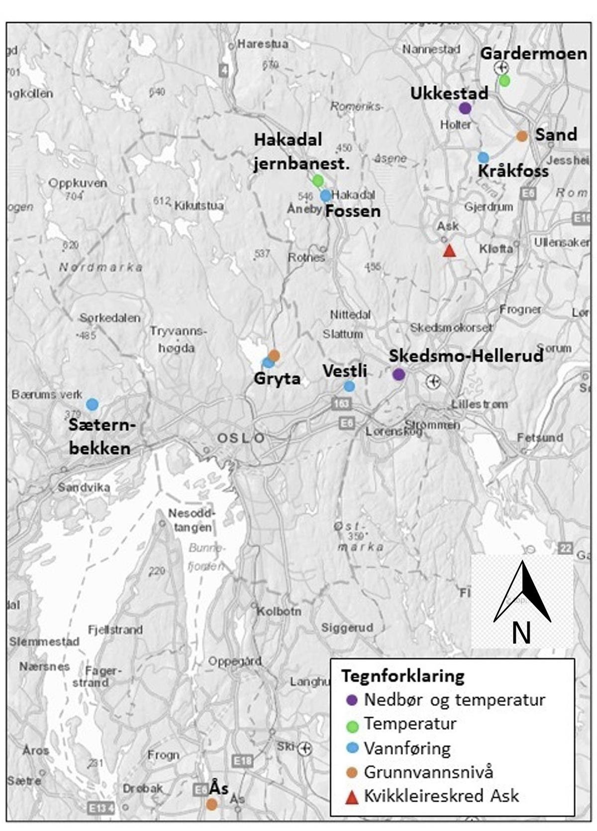 Nedbøren fra SeNorge2018 er benyttet for å se på det generelle bildet som dataene over flere år gir. Imidlertid ble det observert vesentlig mer nedbør enn SeNorge2018 antyder for stasjoner lokalisert øst og nord for Ask i perioden 26. - 29. desember 2020. I SeNorgeV2 er nedbøren i slutten av desember bedre fanget opp. For vurdering av forholdene i desember 2020 er derfor data fra SeNorgeV2 benyttet.