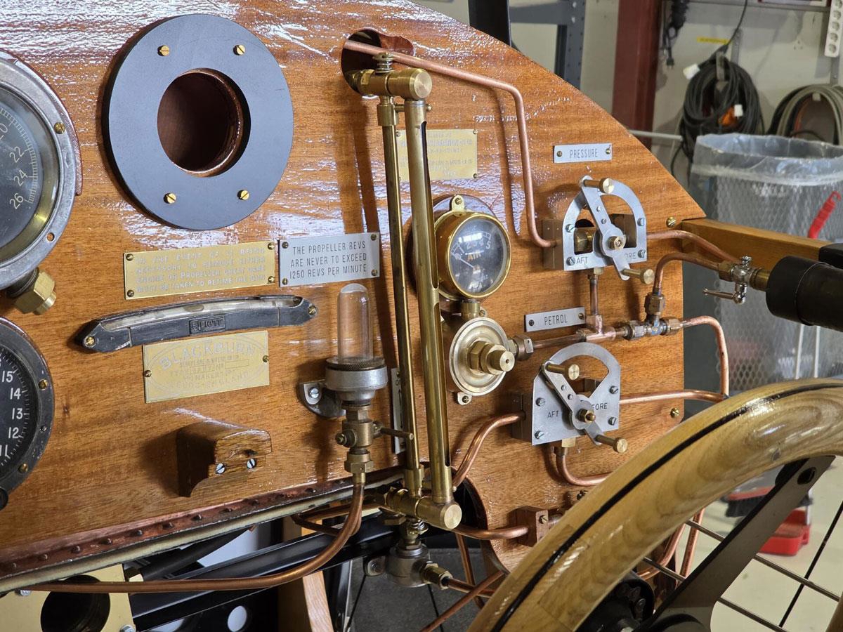Norsk Luftfartsmuseum, Bodø. Ein del av interiøret i flyet «Sopwith Baby», som er nybygd etter originale teikningar frå Marinens Flyvebaatfabrikk. Motor, propellar og dei fleste instrumentene er originale og bygd om lag 1917. Flytypen er Noregs første jagerfly.