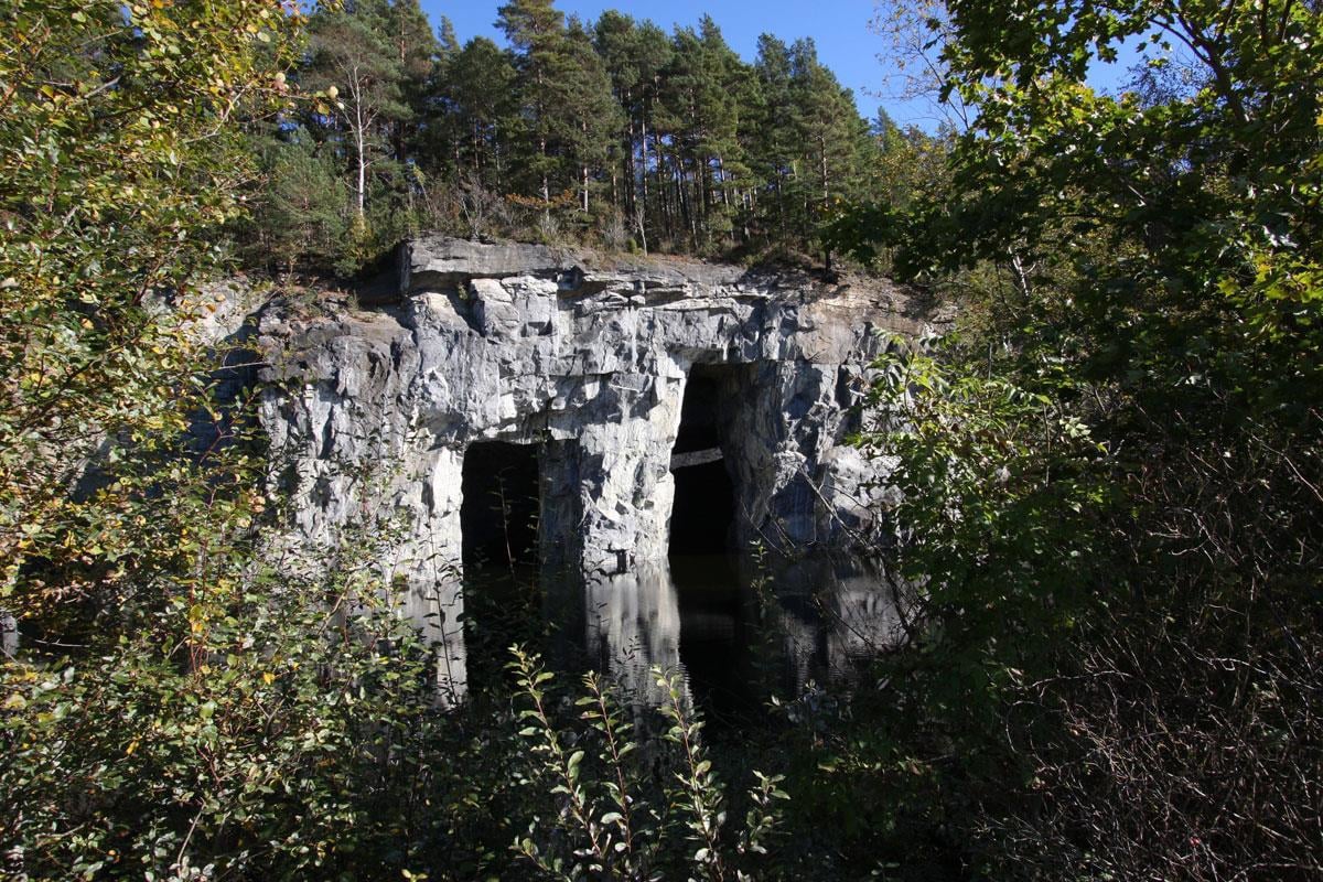 Sanden, Bamble. Kalksteinsbrot der Hydro henta ut kalk til gjødselproduksjon, ca. 1910–1929.